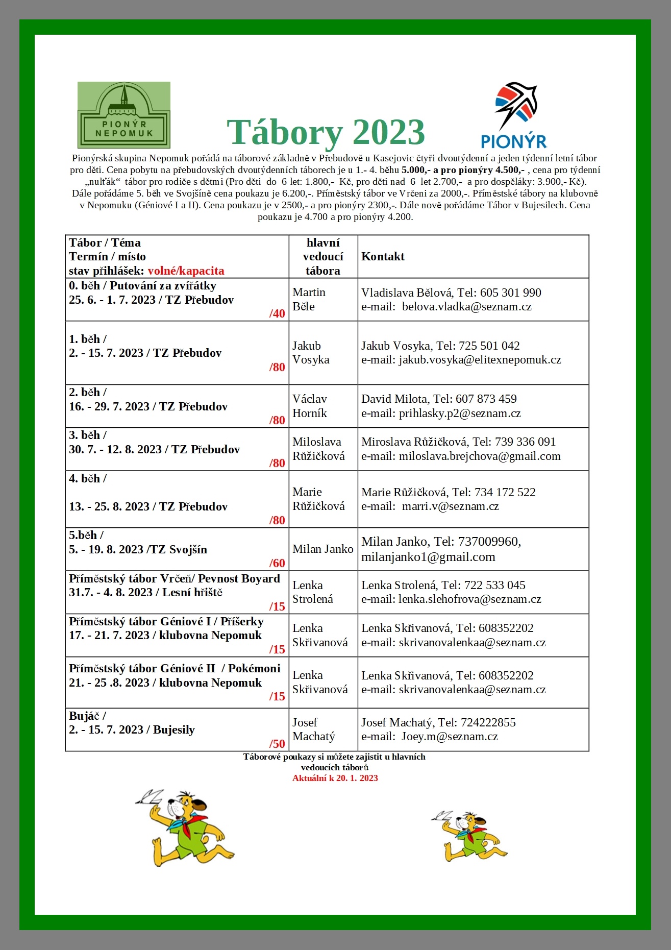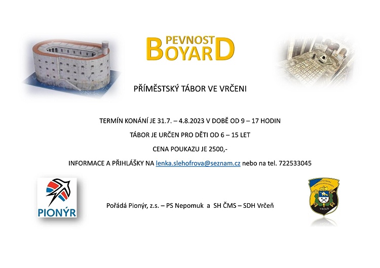 Pionýrská skupina Nepomuk připravila pro léto 2025 šest táborových běhů, tábor rodičů s dětmi a tři příměstské tábory.. O přihlášky na tábory si můžete napsat nebo zavolat na kontakty uvedené v letáčku. img