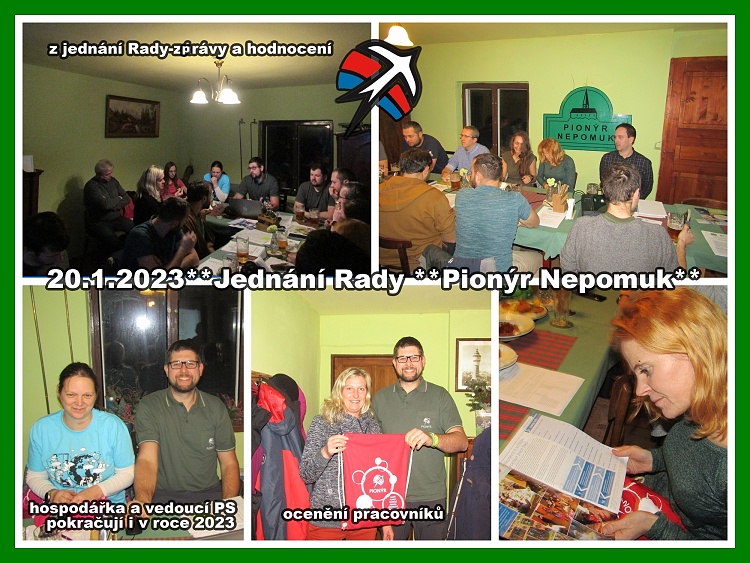 V pátek 20.1.2023 se uskutečnilo jednání rady Pionýrské skupiny Nepomuk (naše výročka). Podle programu jsme projenali hodnocení činnosti a hospodření za rok 2022. Schválil se plán a rozpočet na tento rok. Předala se ocenění vedoucím táborů a oddílů za loňský rok. Ve funkcí předsedy byl potrvrzen V.Horník a hospodářka L.Strolená. V diskuzi se hovořilo o táborové základně, průběhu táboru a našich oddílech.