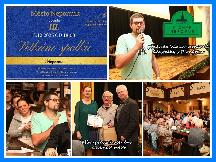 Ve středu 13.12.203 se uskutečnilo III. Setkání spolků v Nepomuku. Kolem 20 organizací a spolků seznámilo přítomné se svojí činností, s náměty a požadavky na město. Za náš spolek vystoupil Václav Horník. Součástí také bylo vyhlášení Sportovců roku a Osobností města za práci s dětmi a mládeží. Ocenění Osobnost obdržel také Miroslav Dvořák za dlouholetou práci v Pionýrské skupině Nepomuk.