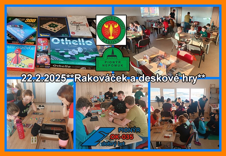 V sobotu 22.2.2025 se v naší klubovně odehrálo skvělé odpoledne s deskovými hrami. Pozváni byly členové našeho oddílu Rakováček, členové Mladých hasičů a rodiče dětí. Zahrát si s námi přijeli i profesionální deskoherníci z oddílu deskovek v DDM. Měli jsme připravené hry pro menší i větší, někteří si donesli hry vlastní. Byla možnost vyzkoušet si nové hry a my zjistili, že do oddílu nutně potřebujeme další, protože her není nikdy dost. Bylo připravené drobné občerstvení, které napekly maminky. Odpoledne se vydařilo, všichni účastníci odcházeli spokojení.**Markéta V.