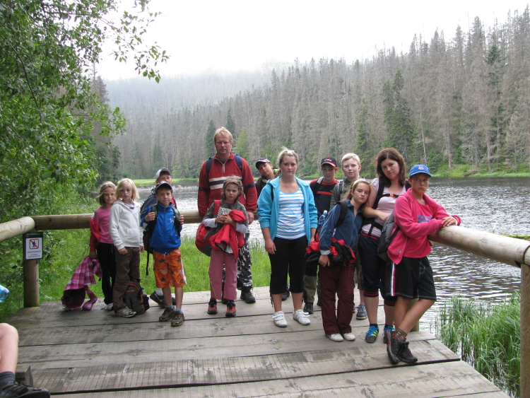 Již po sedmé se uskutečnil táborový pobyt pionýrů z Nepomuku v Železné Rudě. Letos pod názvem Vrcholy a jezera Šumavy. Oproti minulým pobytům jsme se letos ubytovali na Hotelu Grádl, který nám poskytl perfektní zázemí pro náš pobyt. Počasí nám  moc nepřálo teploty od 11 do 15 stupňů, většinou přeháňky a déšť. Někdy se na nás také podívalo sluníčko. Nejhorší den bylo úterý, vypravili jsme se na Černé jezero a vodopád Bílou Strž. Na jezeře nás zastihl déšť a pršelo až do Hojsovy Stráže. Patnáct kilometrů v dešti. Děti to zvládly perfektně. Po absolvování závěrečného výstupu na Grádl byly  za chvíli na hřišti. Celkem jsme nachodili sto kilometrů a nepočítáme odpolední aktivity při florbale, vybíjené, tenisu a plavání. Našli jsme si čas i na výtvarné dílny.  Jak jsme ušlapali Šumavských 100 km: