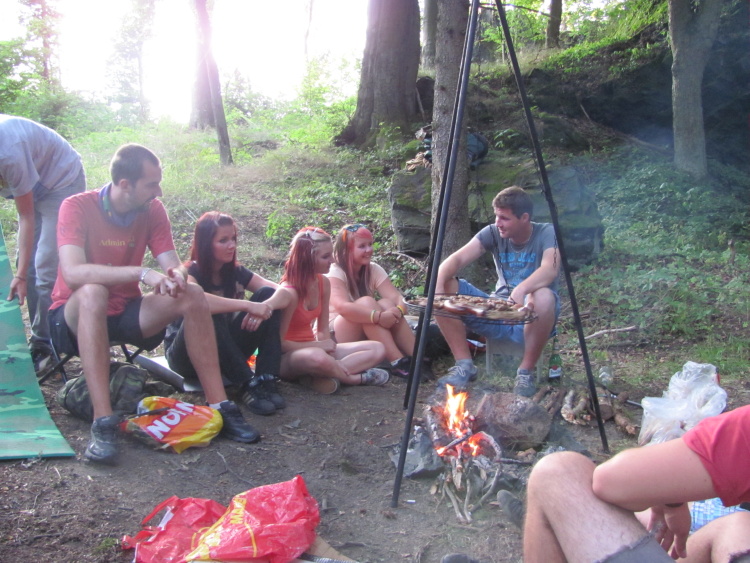 To už byli všichni odpočatí, a proto přišla na řadu další hra, tentokráte trošku bojovější. Díky tomu byl každý po hodině hraní rád, že je konec a může si jít sednout k ohni. Není proto divu, že se po mase jen zaprášilo (pravděpodobně i díky počtu lidí). S plnými bříšky jsme pokračovali v živém rozhovoru doplňovaném zpěvem u kytar a v brzkých hodinách jsme šli spát.