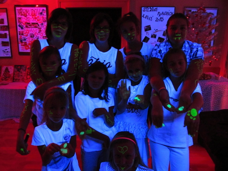 Už několik let děláme již tradiční vánoční dílny a přespání děvčat z oddílu Pusík na naší klubovně. Sešly se v pátek v podvečer a tvořily vánočně, přáníčka a sněhuláčky. Po večeři byl čas na diskotéku v bílém. Nejvíc se děvčata vyřádila malováním , které nádherně svítilo v našem UV osvětlení. Sobotní den byl opět ve znamení tvoření betlémů a jmenovky. Před polednem jsme si popřáli hezké vánoční svátky a rozešli jsem se domů. Sejdeme se opět až v roce 2016.