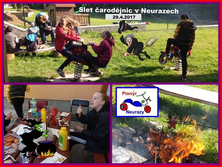 29.4. 2017 jsme se již tradičně sešli u naší klubovny v Neurazech. Nejdříne se představily čarodějnice, spálili jsme jednu (ne živou) a pak zábava přešla do klasiky. Klouzání na skluzavce, hry a hlavně pečení buřtů. Trochu zaváhal fotograf :-), přesto se slet vydařil bez větších ztrát a na životech a po setmění začaly přicházet starší čarodějnice ze vsi (asi jsme je inspirovali)