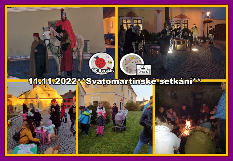 Pionýr Nepomuk, oddíl Vlčata společně s MC Beruška připravily Svatomartinské setká v pátek 11.11.2022. Pro děti byly připraveny hry a soutěže, hledání podkovy, opékání buřtů. Přijel také sv. Martin na bílém koni, sníh nepřivezl, ale stejně to byl moc hezký podvečer.
