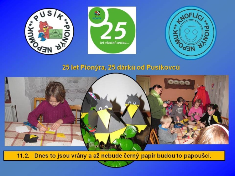 Naše dětská organizace Pionýr připravuje a organizuje volný čas dětem a dospělákům v malém městečku jižně od Plzně.