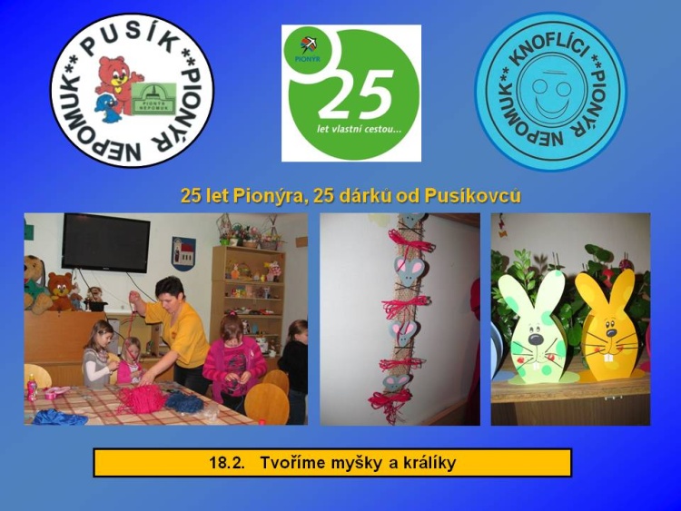 Naše dětská organizace Pionýr připravuje a organizuje volný čas dětem a dospělákům v malém městečku jižně od Plzně.