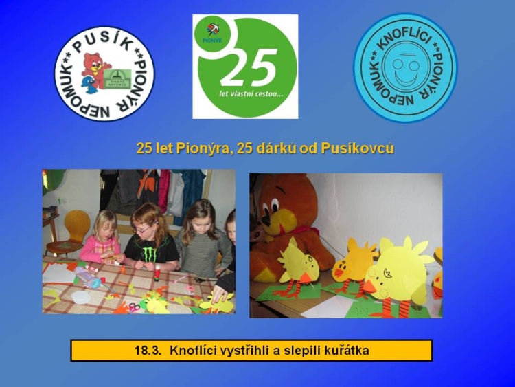 Naše dětská organizace Pionýr připravuje a organizuje volný čas dětem a dospělákům v malém městečku jižně od Plzně.