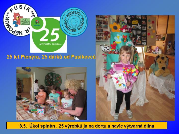 Naše dětská organizace Pionýr připravuje a organizuje volný čas dětem a dospělákům v malém městečku jižně od Plzně.