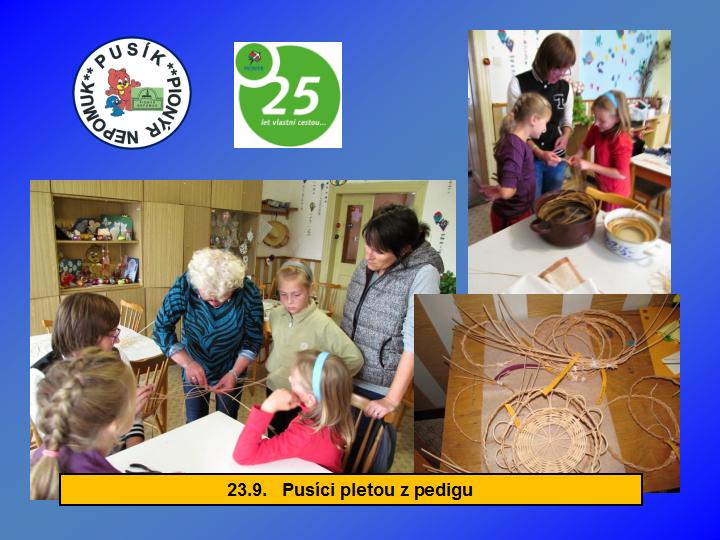 Naše dětská organizace Pionýr připravuje a organizuje volný čas dětem a dospělákům v malém městečku jižně od Plzně.