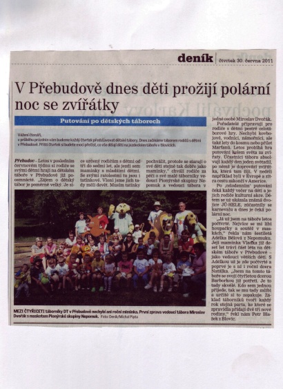 Naše dětská organizace Pionýr připravuje a organizuje volný čas dětem a dospělákům v malém městečku jižně od Plzně.